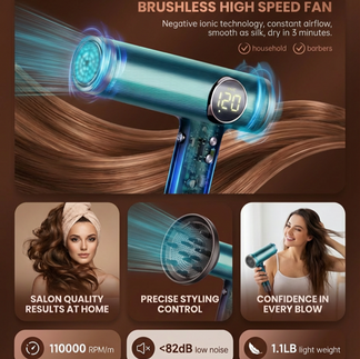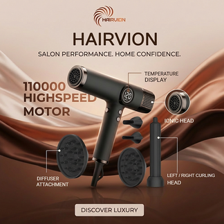 Professional Super Negative Ion Hair Dryer | Hairvion is crafted for salon-quality results at home or on the go. With a powerful 1800W AC motor and ceramic heating element, it delivers fast, even drying without heat damage. Featuring over 3 heat modes, 3 speed settings, and intelligent temperature control, it adapts effortlessly to your styling needs. Ionic technology and diffuser support reduce frizz and enhance shine, while the ergonomic design with an unfold able handle ensures comfortable use. Certified with CE for safety and durability, this dryer is built for professionals and beauty enthusiasts alike.