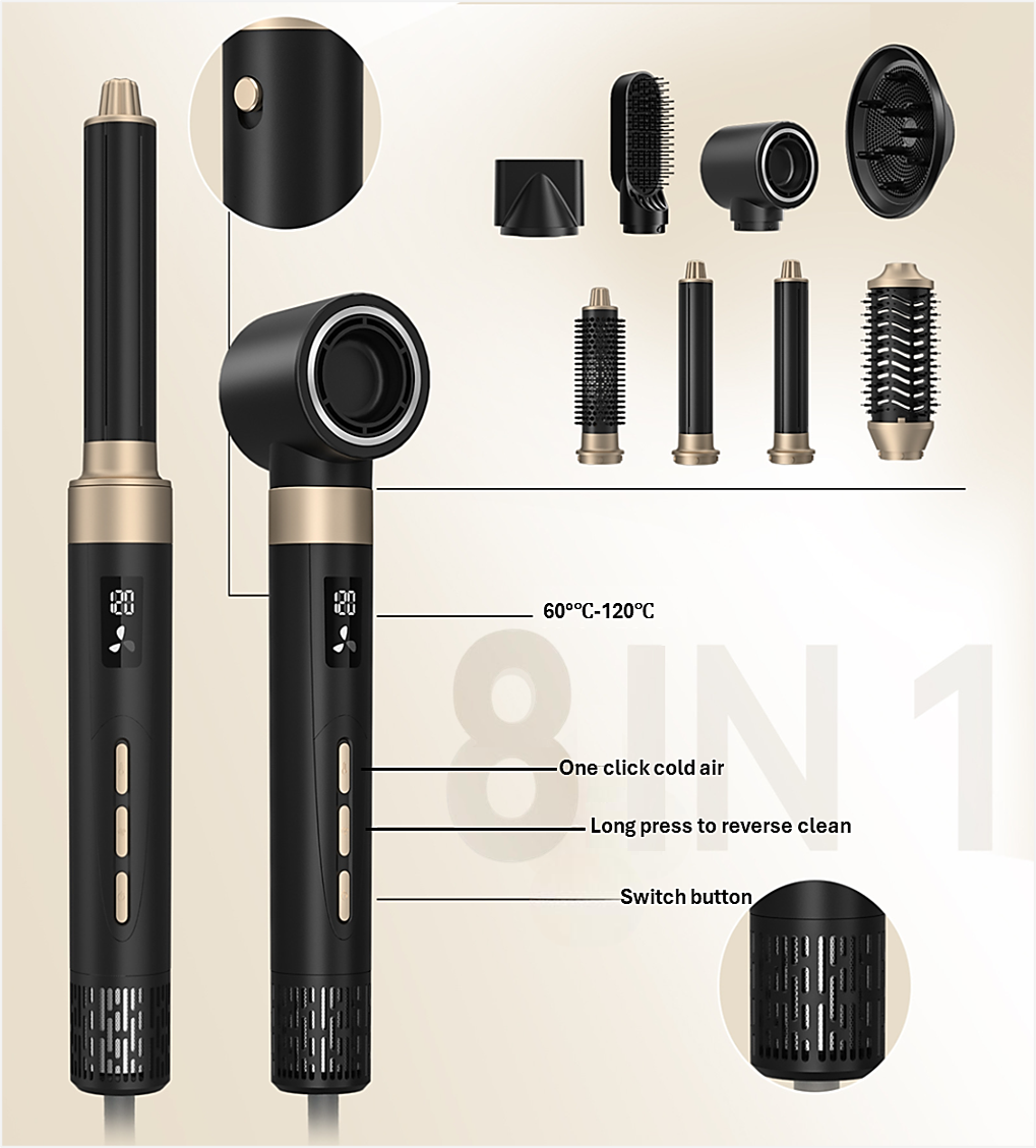 Eight-In-One Hair Dryer, Head Changing Curling Wand, High-Speed Brushless Hair Dryer, Five-In-One Hot Air Comb